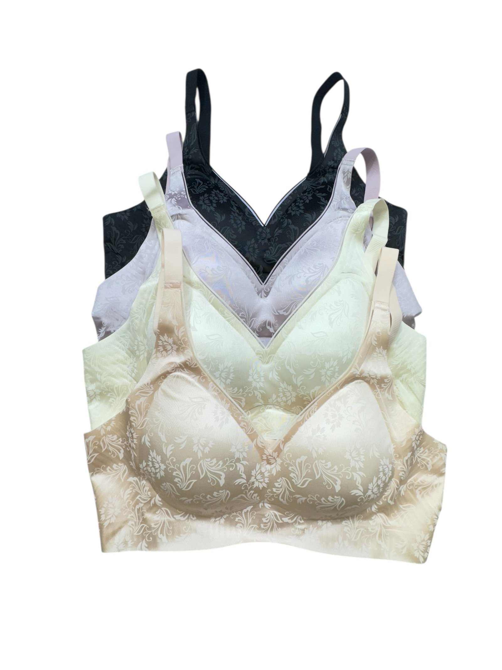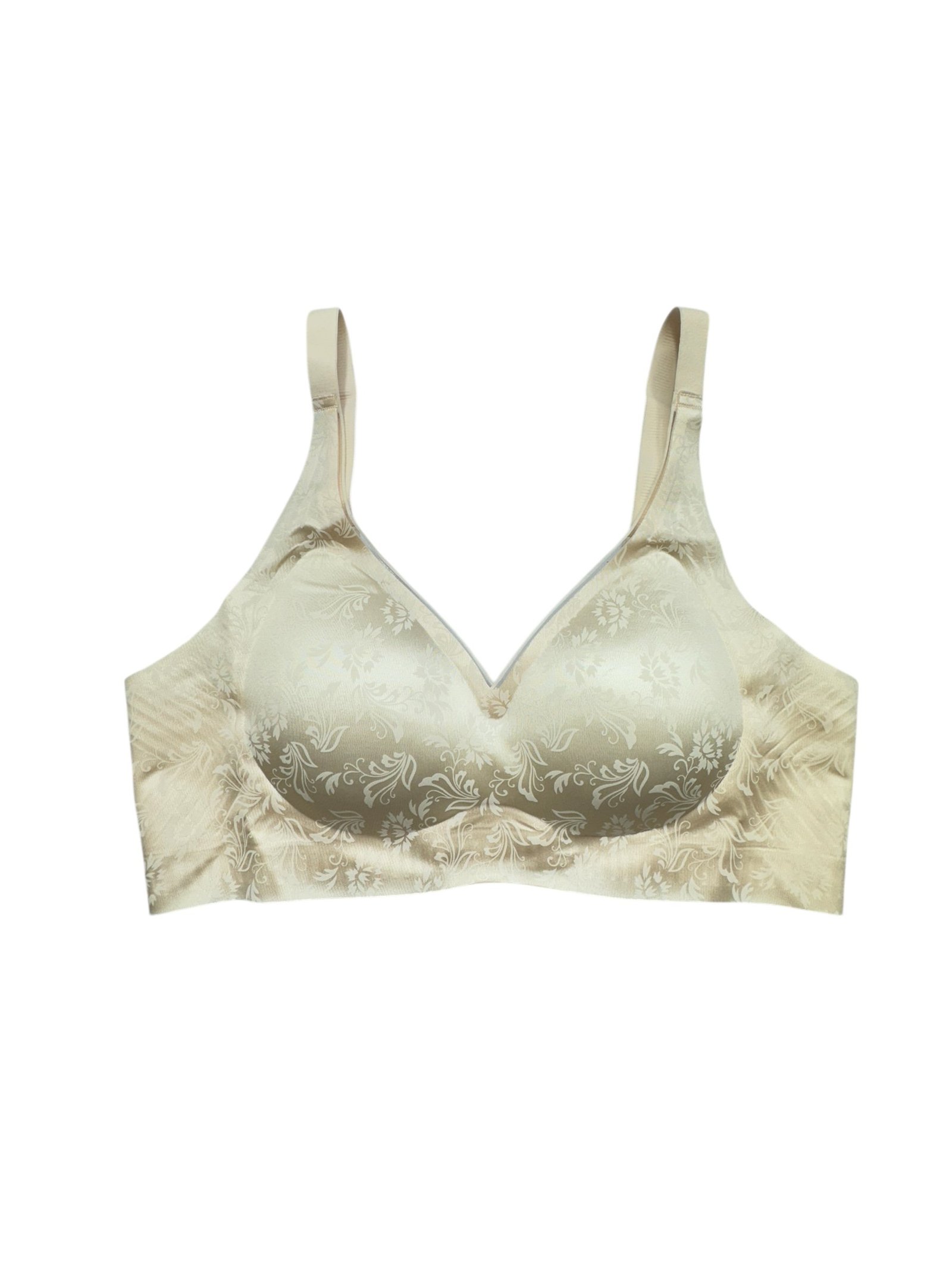 This is a lightly padded, full-coverage bra designed for everyday comfort. It features smooth, molded cups that provide good shape and gentle support without underwires. The soft fabric has an elegant floral print, giving it a subtle and classy look. Wide shoulder straps and a broad underband help reduce pressure and ensure a secure, comfortable fit, making it suitable for long hours of wear.